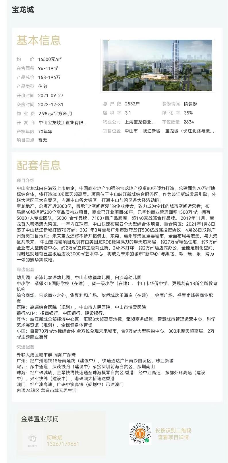 區(qū)域:中山市歧江新城寶龍城(長(zhǎng)江北路與濠江西路交匯處) 最新開盤:-